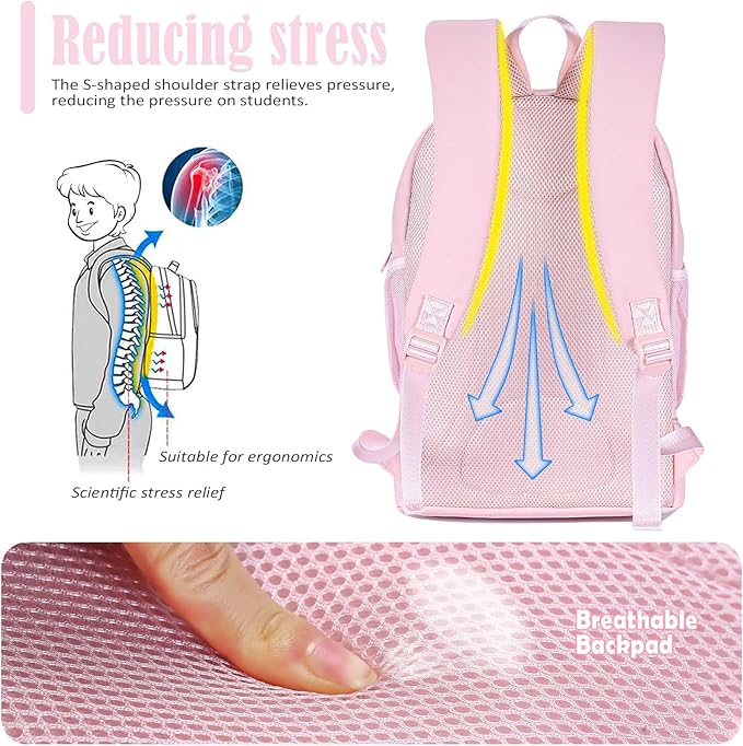 - Multiple Organized Pockets:The whole lunch backpack size: 16.5" H x 11" L x 7.5" W.The kid's backpack features 1 laptop sleeve compartment for 16"laptops or books,1 main zipper pocket for books, clothes, files etc.The second and third zipper pocket for your daily necessities,notebooks, pens.1 open pocket for tissues, keys.2 side pockets for umbrella or water-bottle.The bottom is also a leak-proof insulated lunch bag.Large capacity kids 2-in-1 Backpack & Insulated Lunch Bag is perfect for school.
