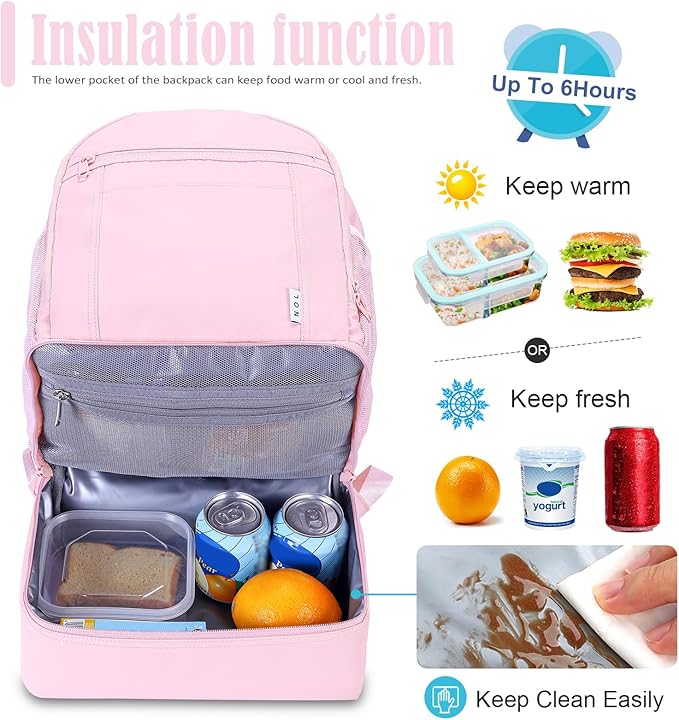 - Stylish multi-functional lunch backpack: This stylish backpack is designed in a basic shape with a leak-proof, cold-keeping insulated pouch. With multiple pockets and laptop compartments, it is a good choice for going to school, daily use, traveling, office, outdoor activities, and also perfect as a gift.