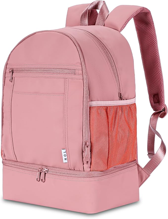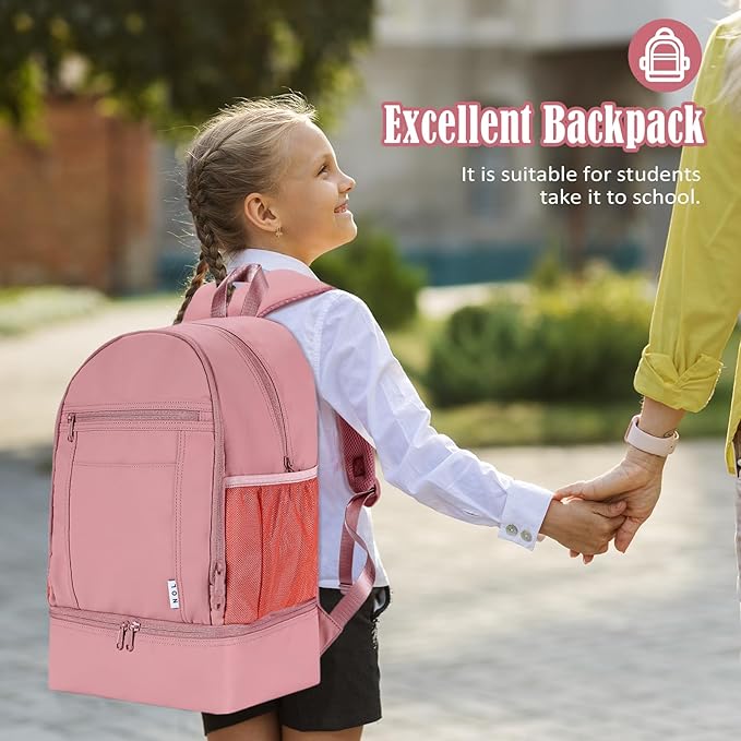 NOL Natural Organic Lifestyle Kids 2-in-1 Backpack & Insulated Lunch Bag-16"Multi-Functional Large Compartments Backpack for School & Travel, Double Deck, Water Resistant, Leak-proof, Padded-Dark Pink