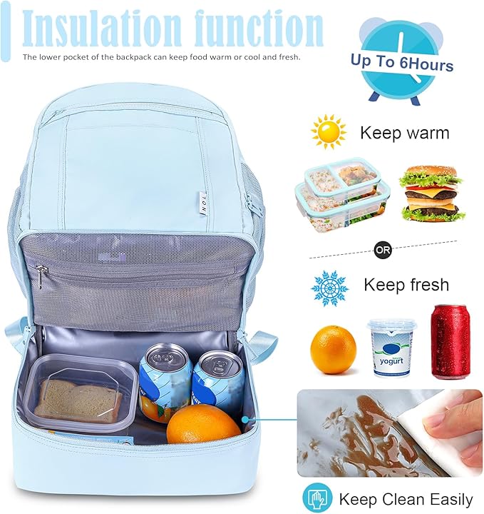 - Stylish multi-functional lunch backpack: This stylish backpack is designed in a basic shape with a leak-proof, cold-keeping insulated pouch. With multiple pockets and laptop compartments, it is a good choice for going to school, daily use, traveling, office, outdoor activities, and also perfect as a gift.