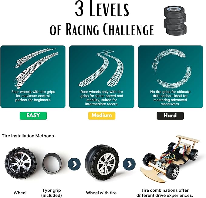 - ECO-FRIENDLY WOODEN CONSTRUCTION: Crafted from durable, high-quality wood, this car kit provides a sturdy, eco-friendly building experience that adds a unique touch to any STEM activity.