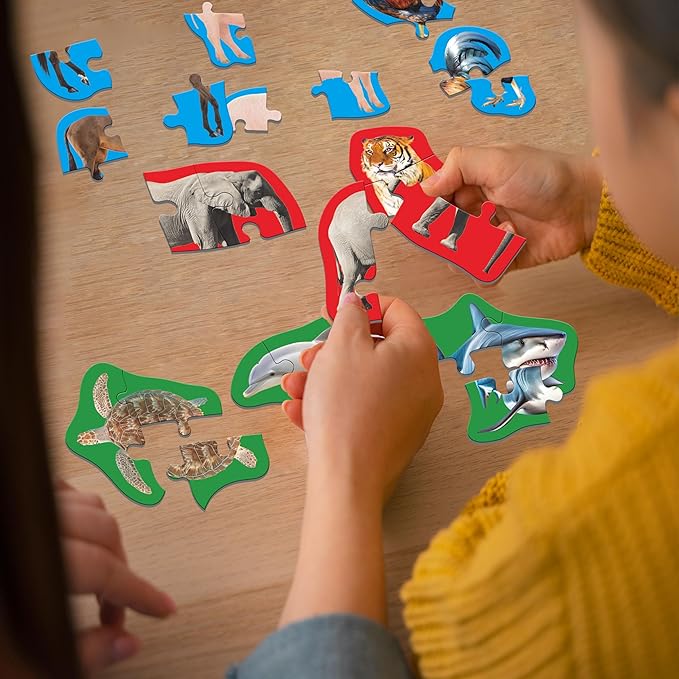 - Value Pack: 12 animal puzzles in a portable plastic box, easy to store and stay organized. Each puzzle features beautifully detailed illustrations of various animals, allowing children to learn about different species while having fun. Animals include lion, sea turtle, rooster, tiger, shark, horse, etc.