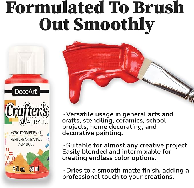 DecoArt Crafter’s Acrylic Paint Set, 24 (2 fl oz/59 ml) Assorted Bright Colors, DIY Arts And Crafts Acrylic Paint For Kids And Adults, 48 Fl Oz(Pack of 1)