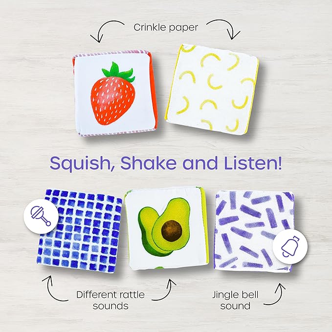 - Sensory Exploration: Each block includes a unique feature such as a rattle, crinkle, flap, textures, bell, or ribbon tags. These sensory elements stimulate your baby's senses and help develop fine motor skills, making it an ideal first toy.