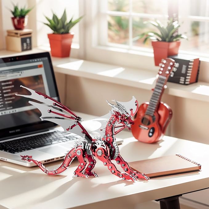 - 【Steampunk-Style Metallic Craft】Each stainless steel piece features a realistic texture with cyberpunk flair. Finished product size:9.76x5.94x5.94 inches, this mechanical dragon model kit doubles as a striking ornament for desks or modern offices, appealing to collectors of premium metalfigs.