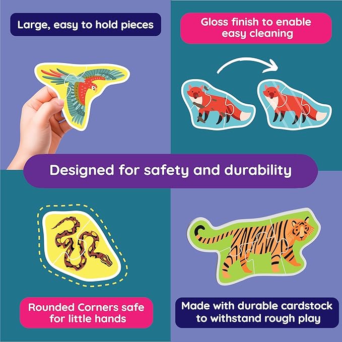 - Montessori Inspired Design: Crafted using Montessori toy principles, each piece is thick, easy to grip, and made from durable, child-safe materials with smooth edges. 2 piece puzzle is designed to fit comfortably in small hands, helping toddlers refine fine motor control and focus.