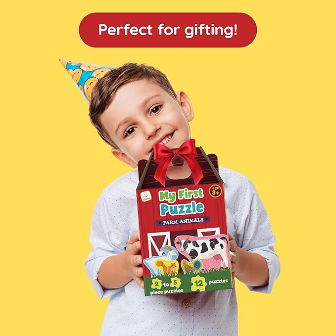 My First Puzzle - Montessori Toy, 12 Graded Puzzles, 2-5 Pieces (Farm Animals)