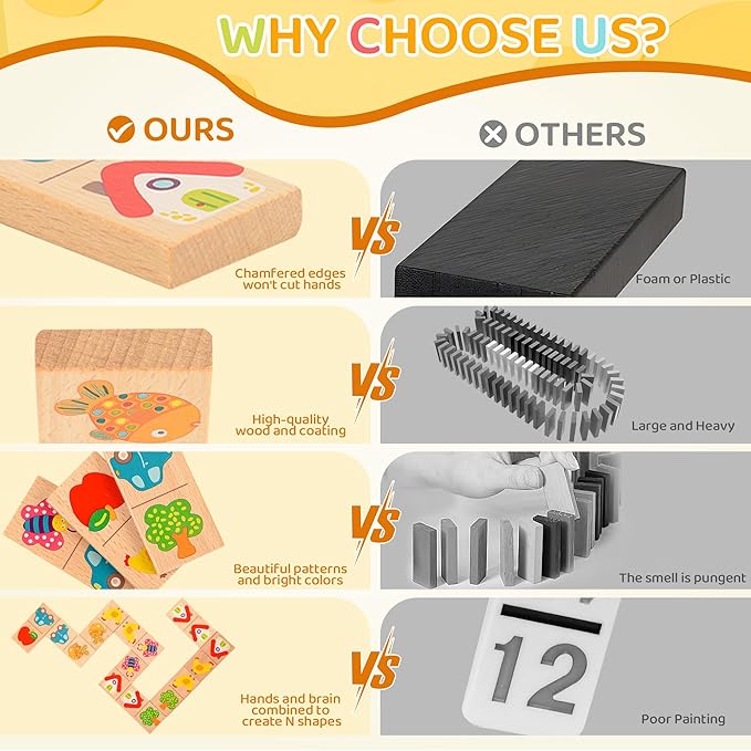 - Engaging Wooden Puzzle: This 28-piece domino set features vibrant fruit and animal designs, providing an engaging and educational experience for kids.