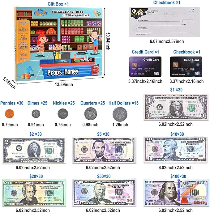 - 【Educational and Fun】: Our toy set encourages children to understand the concept of money and its value. It helps with early financial management and improves basic counting skills. It is a valuable learning tool that fosters creativity and imagination while providing countless hours of fun.