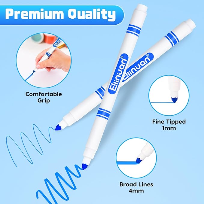 - Safe and Washable: Made from non-toxic, odorless, water-based ink and compliant with ASTM-D4236 standards, these washable markers for kids are safe. The ink won’t bleed through most paper and is easy to wash off hands and clothes, great for worry-free creativity at school or home. Durable tips offer smooth, consistent color, and closing the cap after use helps extend marker life. A teacher-approved art supply that’s perfect for students, kids, and young artists, homeschooling supplies