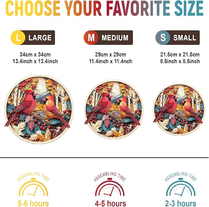 - Autumn Cardinal Wooden Puzzle: This wooden jigsaw puzzle takes inspiration from nature, featuring irregularly shaped animal pieces. The original hand-drawn designs not only provide a puzzle-solving experience but also serve as unique home décor