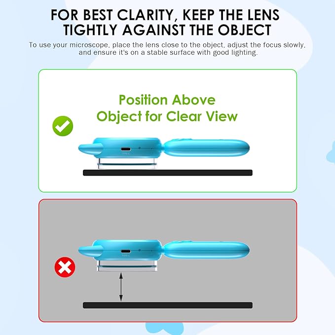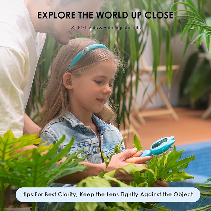 - Child-Friendly Operation: Simple 100X zoom and manual focus controls designed for small hands. Built-in 8 LED lights with auto brightness adjustment ensure clear viewing in any setting. Perfect for indoor and outdoor exploration with instant, high-quality results.
