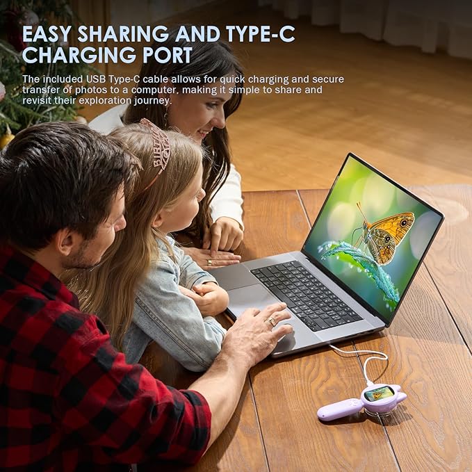 - Instant HD Capture & Share: Built-in storage for 100 photos (no card needed) with USB-C fast transfer. Kids can document discoveries, create science journals, and share findings via computer - perfect for classroom projects.