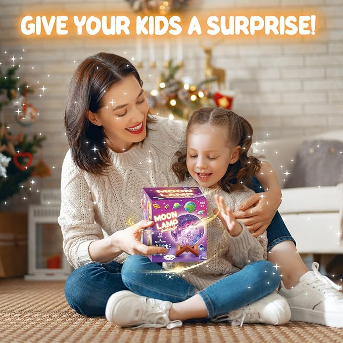 - 🌕【All-in-One 3D Moon Lamp Kit】Unleash your child's creativity with our complete set! Includes a paintable moon lamp, wood base, 12 paint colors, palette, 2 paintbrushes, 5 stamp sticks, 6 space gypsum molds, apron, sleeves, and 5 luminous stickers. Incredible value for educational coloring toys and art kit for kids ages 8-13, offering double the fun!