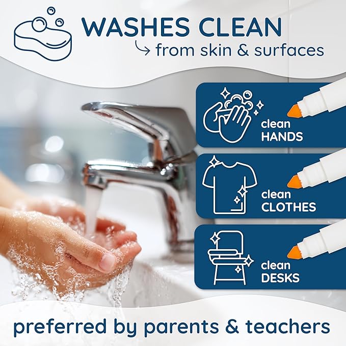 - Truly Washable and Parent-Friendly – Designed to wash off hands, clothing, and surfaces with ease, these bulk washable markers are classroom and home tested—even messy artists won’t leave behind stains.