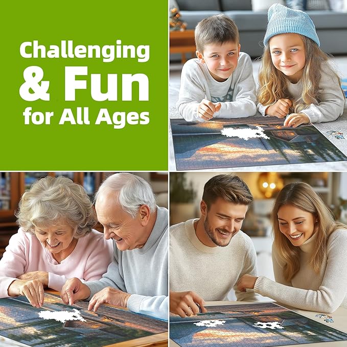 - ๐ฒ SERENE 500-PIECE NATURE THERAPY PUZZLE Assemble a panoramic mountain lake scene with glowing log cabin, evergreen forests, and mirrored waters. Includes glare-free poster for reference. Finished 23"x15" โ ready for framing as cabin decor.