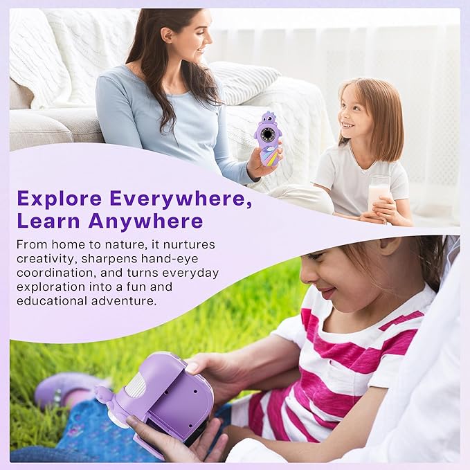 - 【See Far, Explore More】When it's time to explore the great outdoors, Dino effortlessly transforms into a telescope, bringing distant scenes to life on its vibrant 2" IPS color screen. Whether it's observing birds, insects, or wildlife from afar, kids can enjoy a vivid and detailed view without disturbing the creatures they're watching. From backyard adventures to exploring nature, Dino inspires young adventurers to step outside, embrace nature, and connect with the world around them.