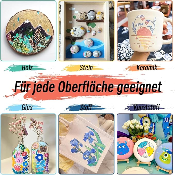- 【Versatile】: Suitable for various applications such as painting, sketching, making and DIY projects; it can also be used on surfaces like canvas, paper, wood, plastic, metal, glass, fabric, ceramics and more, providing smooth and stable ink output. This versatility enables users to create across different mediums and realize their DIY ideas in various projects