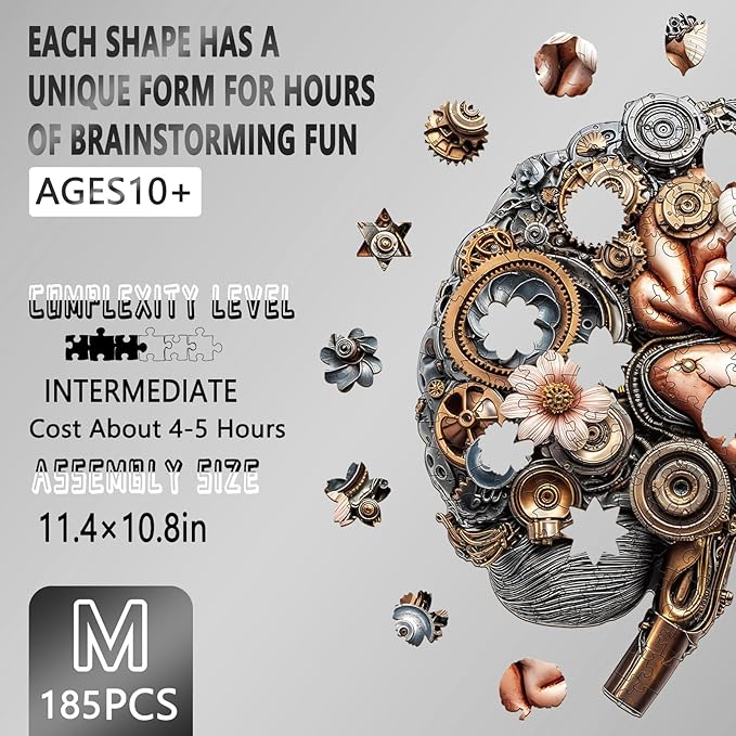 Wooden Puzzles for Adults, Mechanical Brainstem Wooden Jigsaw Puzzles, Flat Puzzle with 3D Visual Effect, Brain Wood Puzzles Adult, Unique Shape Wall Art Canvas Puzzle Gift (M-11.4 * 10.8in-185Pcs)