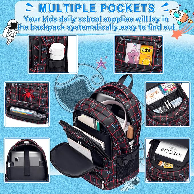 - Multi Compartments: This large bookbag's main compartment has laptop pockets, it will easily hold your folder, binder, 14 inch laptop; The second pocket perfect for your notebook; third pockets suitable for pencil case; front clear pocket perfect for kids toys; 2 meshed side pockets for water bottle