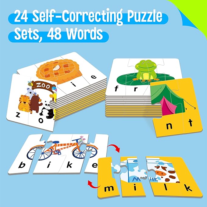 - Self-correcting Design: Each puzzle piece is uniquely cut; it fits only with its correct match. Children can self-correct without needing constant adult supervision. This smart design builds kids’ confidence, encourages independent learning, and reinforces correct spelling through hands-on discovery and play.