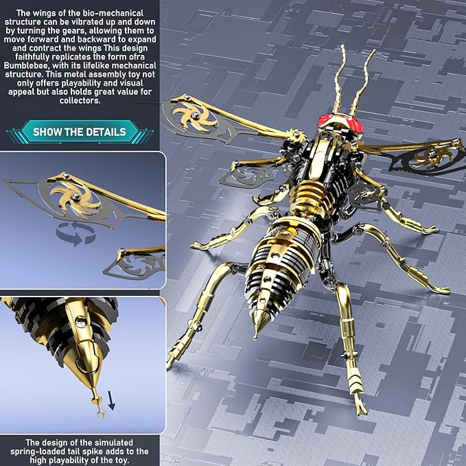 3D Puzzles for Adults, Bumblebee Metal Assembly Jigsaw Game with Steel Mechanical Engineering, Advanced DIY Crafts for Relief & Collection(Black-Gold)