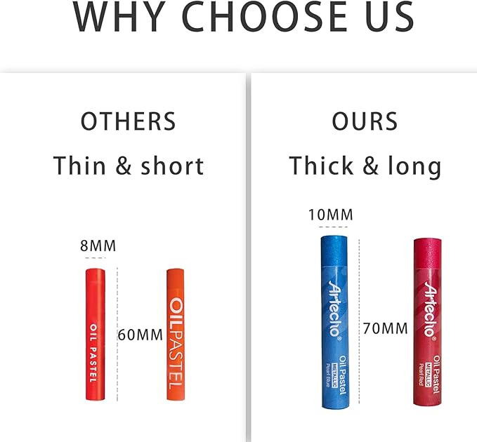 - Brilliant Colors: Artecho artist soft oil pastel includes 12 metallic colors. High-quality pigments