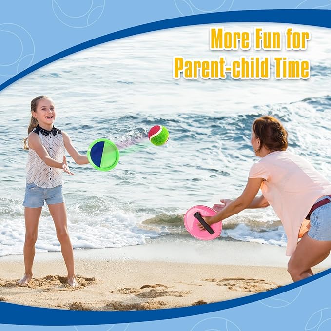 - 【kids outdoor toys】Enjoy endless fun with our Ball and Catch Game set! Package includes 4 paddles, 4 sticky balls and a storage bag, perfect outdoor toys for 3+ years old boys girls, great pool toys and beach toys for kids ages 4-8 8-12. Ideal party favors or birthday gifts for 3 4 5 6 7 8 9 10 11 12 year old boys and girls.