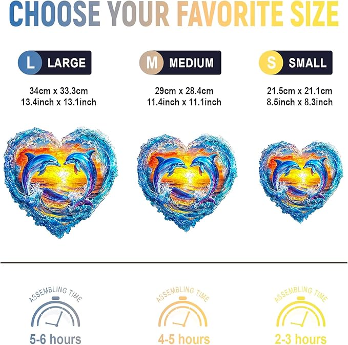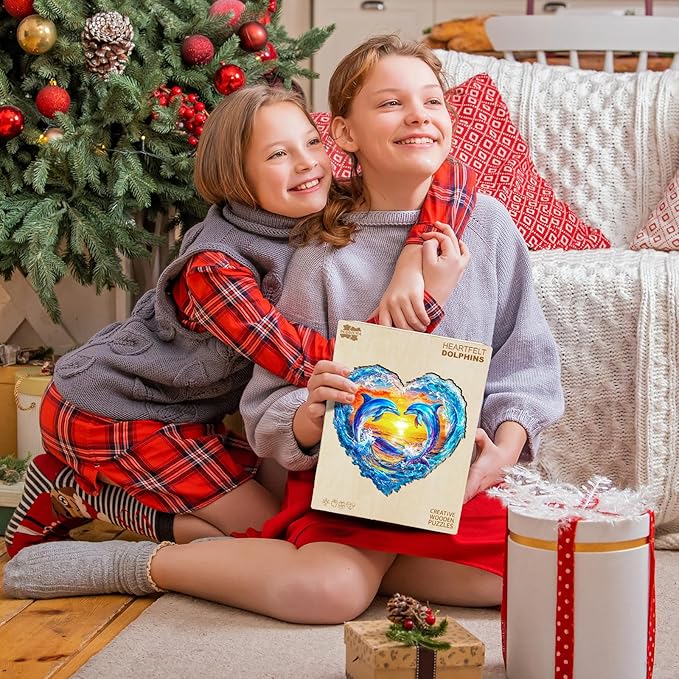 - Heartfelt Dolphins Wooden Puzzle: This wooden puzzle takes inspiration from nature, intended to display different landscapes of 3D effect with flat puzzle. The original hand-drawn designs not only provide a puzzle-solving experience but also serve as unique home décor