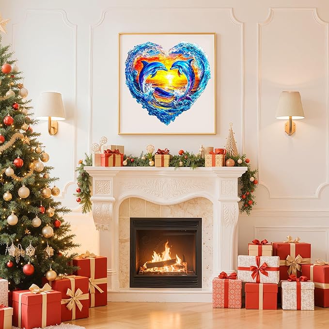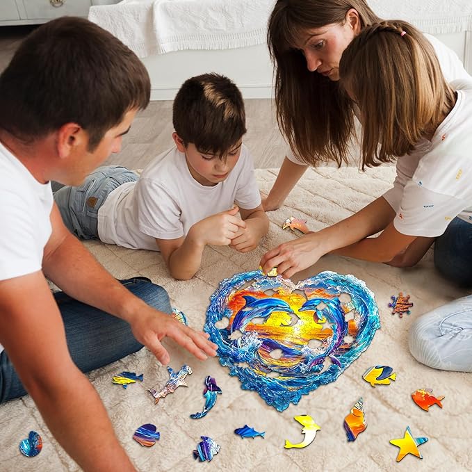 - Heartfelt Dolphins Wooden Puzzle: This wooden puzzle takes inspiration from nature, intended to display different landscapes of 3D effect with flat puzzle. The original hand-drawn designs not only provide a puzzle-solving experience but also serve as unique home décor