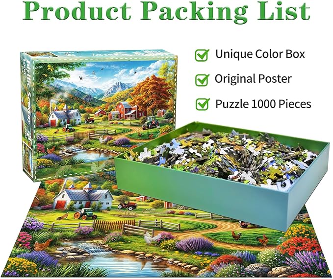 HUADADA 1000 Piece Puzzles for Adults - Country Life - Jigsaw Puzzles for Adults and Kids 1000 Piece Educational Games Colorful Puzzles for Home Decoration