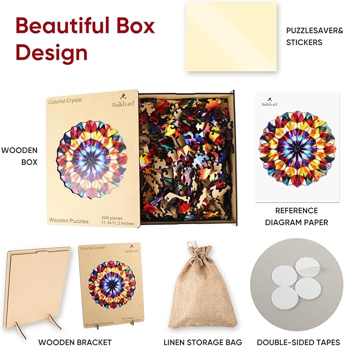 Ruikiyart Wooden Puzzles for Adults, 5MM 200 Pieces Crystal Wooden Jigsaw Puzzles, Gem Puzzle Unique Shaped for Adults and Kids on Birthday, Thanksgiving, Christmas, Family Puzzle Games(11.3''x11.2'')