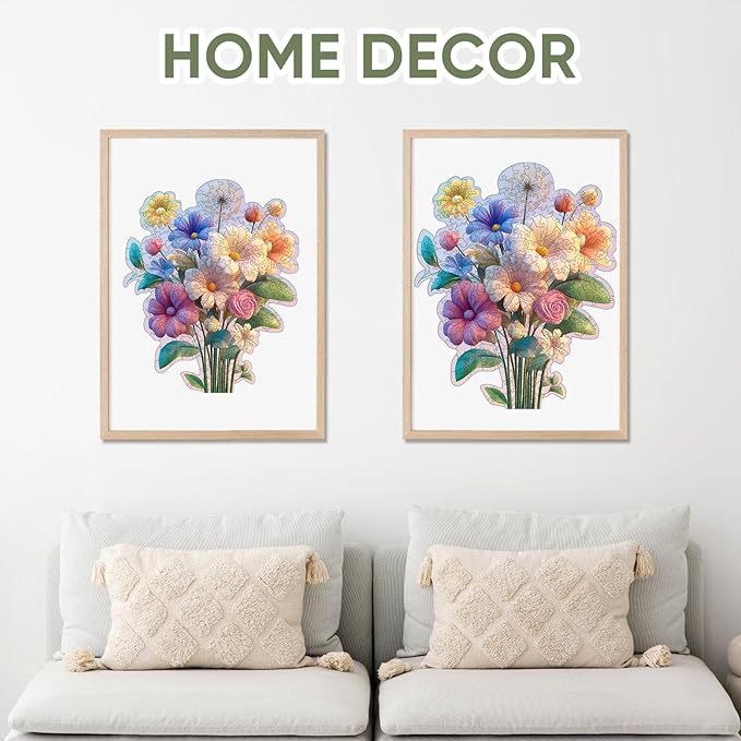 - 【Unique Wooden Puzzle, A Work of Art】Step away from traditional puzzles with our flower-themed wooden puzzles, featuring unique shapes inspired by flowers. Each piece showcases original, hand-painted artwork that’s vibrant and captivating. It's not just a puzzle but a stunning piece of home decor that adds artistic charm to any space.