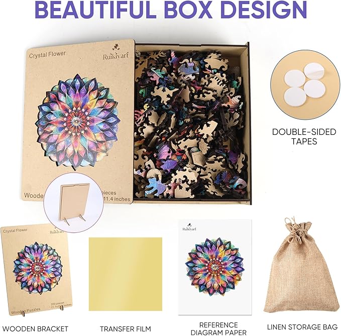 - 【Unmatched Quality, Built to Last】Crafted with precision using 5mm thick HDF wood, UV printing, and laser cutting technology, our puzzles boast a remarkable 0.03mm accuracy. The smooth, durable pieces are fade-resistant, formaldehyde-free, and odorless, with a perfect interlocking fit. This crystal flower’s wooden puzzle is a timeless treasure that can be enjoyed for decades.