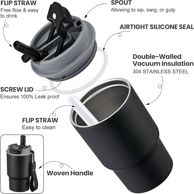 - 14oz Dual Drinking Spout Kids Insulated Water Bottle: This toddler water bottle is double vacuum insulated to keep drinks warm for up to 8 hours. The sealing technology in the lid ensures that each insulated water bottle is 100% leak and spill proof. Sweat-proof kids' water bottles come with a braided rope carry handle to take kids' drinks on the go and keep them hydrated. The dual spout and straw design makes it easy for kids to drink in different scenarios.