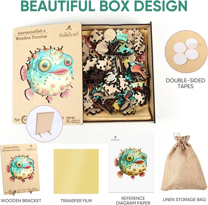 - Extra Thick Unique Wooden Puzzles:Different from other jigsaw puzzles,this Ruikiyart small fish puzzles uses 5mm nature wood,it is 60% thicker than others,So in the process of assembling,the pattern will not loosen,the lovely puzzle can disassembled many times
