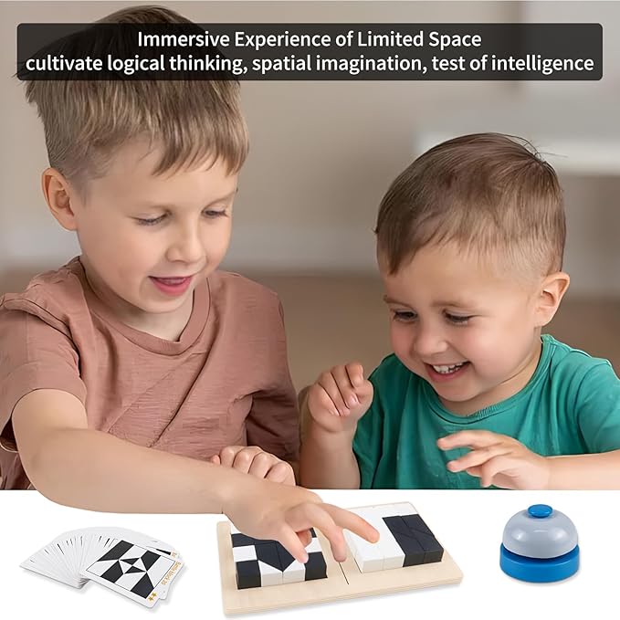 - Simple Gameplay: Battle blocks, there are two puzzles on the same board and one Bell, this allows this wood brain teaser puzzles to be more interesting and challenging. Whoever completes the pattern on the card first will win.
