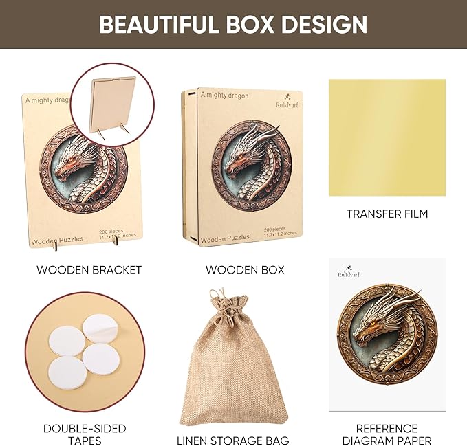 Wood Puzzles Adult, 200 Pieces Dragon Wooden Puzzles,Extra Thick 5MM,Unique Shaped Jigsaw Puzzles for Adults and Kids,Best Birthday Gift and Family Game,11.2"*11.2"