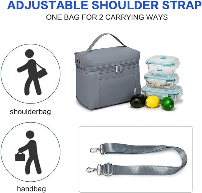 - Portable and cute design: this lunch bag is made of waterproof nylon outside, it’s lightweight and tear resistant; With two ways of carrying- top handle and cross-body by a detachable and adjustable long shoulder strap.