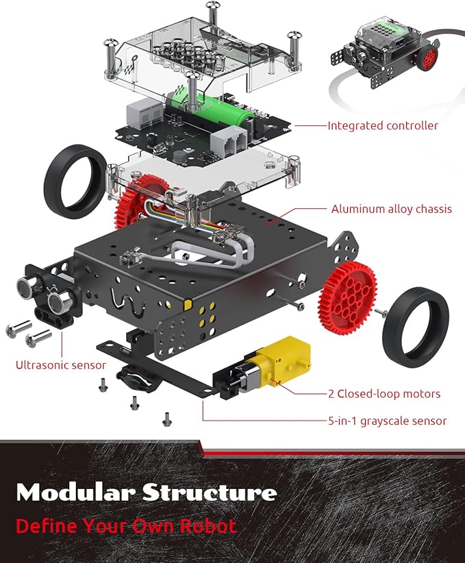 - 【Boost More Creativity】 Rocky features upgraded sensors and motors to unlock greater creativity and precision. With advanced 5-in-1 Grayscale sensors and Closed-loop motors, it excels in line detection and accuracy, empowering kids to explore endless possibilities