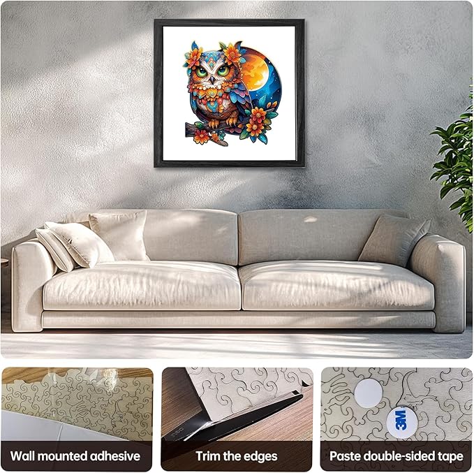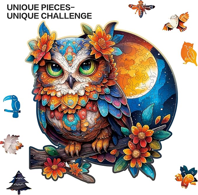 - Stunning Artistic Design:This puzzle features a vibrant, eye-catching wooden puzzle art design of an owl surrounded by colorful flowers and a serene moonlit backdrop. The intricate details and brilliant colors make this puzzle more than just a game – it’s a beautiful work of art that will captivate you from the first piece to the last.