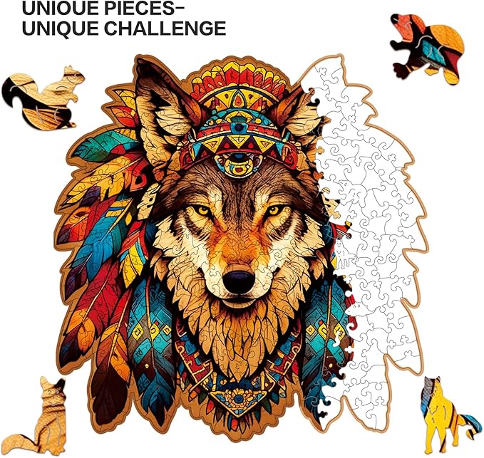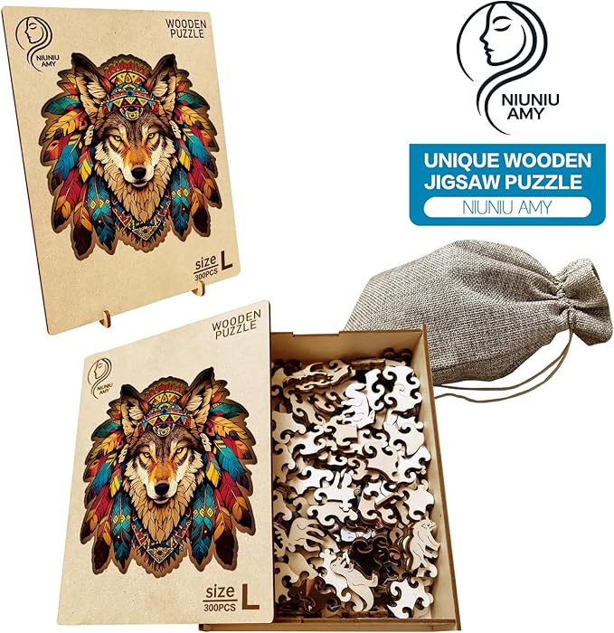 Wooden Puzzle for Adults,Wolf Totem Style Jigsaw Puzzles 300 Piece,Unique Shape Puzzle Challenge 14.9 x 14.9 Inch,Birthday Gifts Family Game