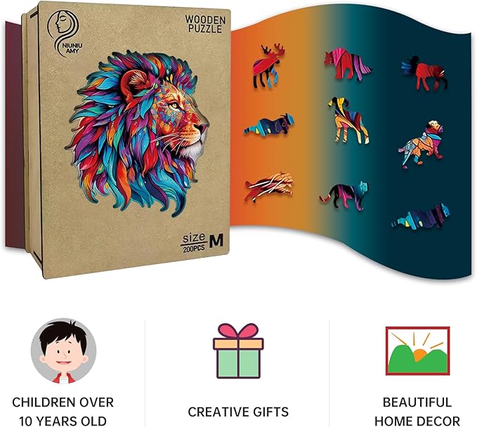 - Exquisite Craftsmanship and Design:This wooden puzzle is a true masterpiece, meticulously crafted with 200 precisely laser-cut pieces that fit together seamlessly. The vibrant lion design is bursting with colors, making it not only a puzzle but also a stunning work of art. Each piece is crafted with care to ensure durability, offering a smooth assembly experience. The intricate details of the puzzle bring the magnificent lion to life, creating a mesmerizing and rewarding experience for puzzle enthusiasts.