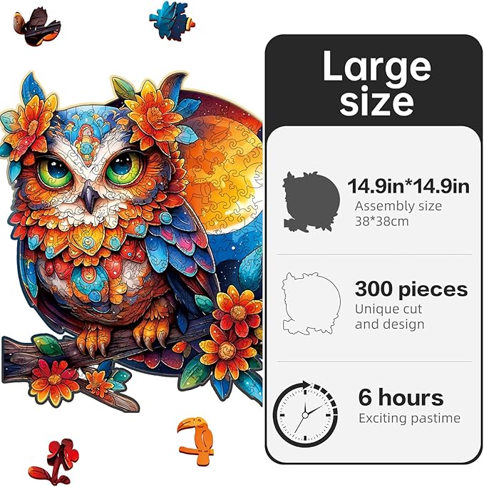 - An Unforgettable Gift for Puzzle Lovers:Looking for a thoughtful wooden puzzle gift? This owl puzzle makes a wonderful present for birthdays, holidays, or special occasions. Its beautiful design, intricate details, and challenging nature make it a perfect gift for puzzle enthusiasts, art lovers, or anyone who enjoys a creative and engaging challenge.