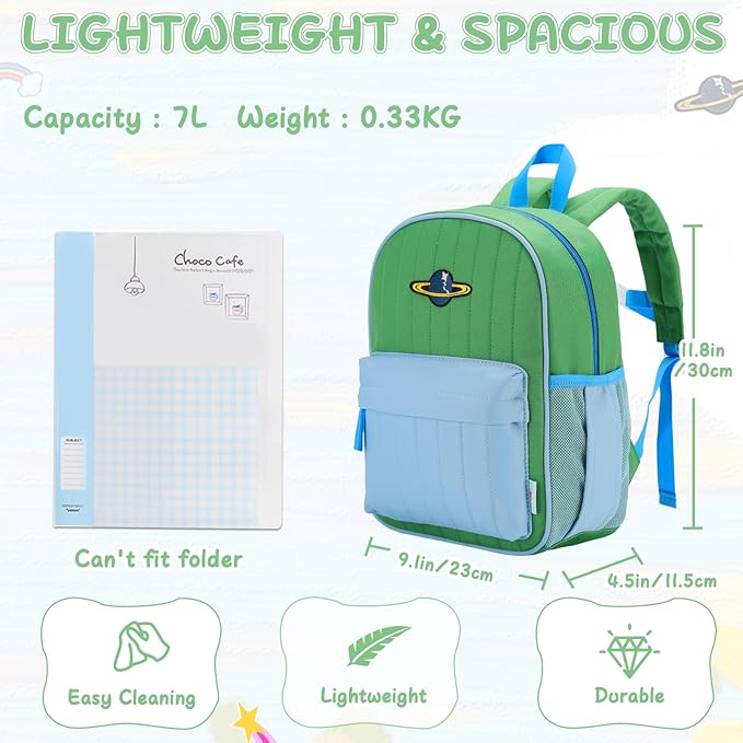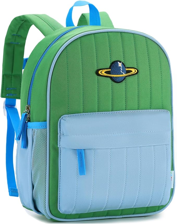 - Cute and Fun Design: Features quilted stitching, vibrant color-blocked fabric, and a charming planet patchwork,making the small school backpack an adorable choice for toddler and preschool kids.