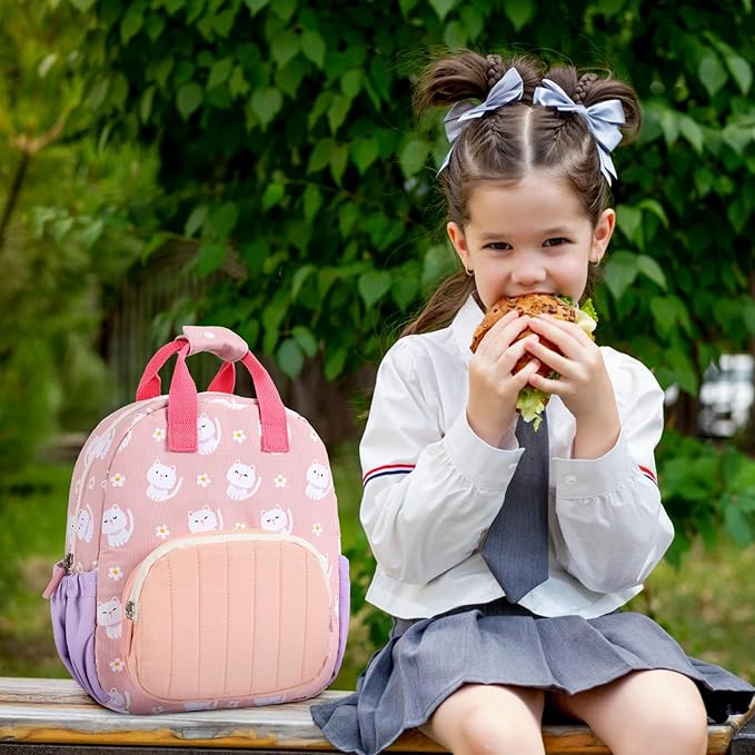 - 【Attractive mini kids backpack】:GAGAKU kids backpack is made of high quality cotton-polyester blend, Made of high quality and harmless materials, it is comfortable and lightweight, so that children can carry it with more peace of mind,personalised backpack for girls with pink cat print, easy to clean, perfect for girl aged 2 to 5 years old