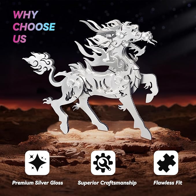- 【Product Quality and DIY Experience】:3D metal puzzle Flaming Kirin diy model kit adopt high-precision laser cutting technology and the high quality stainless steel material to produce,durable and last long.3D metal puzzle offers a wonderful DIY experience,it's an excellent combination of educational and entertainment,suitable for leisure or relaxation,and suitable for teenagers and adults alike.