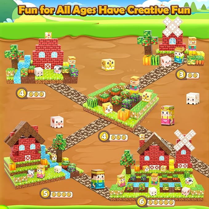 - Build Dream Farm Paradise - Let's build a "farm animals home" with the kids using this magnetic blocks set. 100PCS magnetic building blocks are enough to construct many different interesting farm, from simple farm huts to challenging farm villages. Let's use our magnetic open-ended toys set to witness the creativity and imagination of 3+ years old boys & girls in this farm toys!