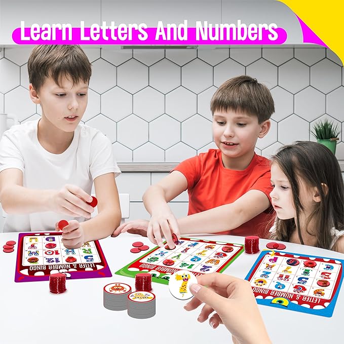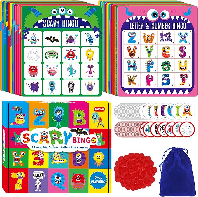 - Excellent Gift: A great tool for parents to give their children preschool education and a little help in the teacher's classroom. Perfect for alphabet parties, family gatherings, and class activities. Playing a bingo game will be a good way for kids to make friends and get families closer. Try the scary bingo game right away.