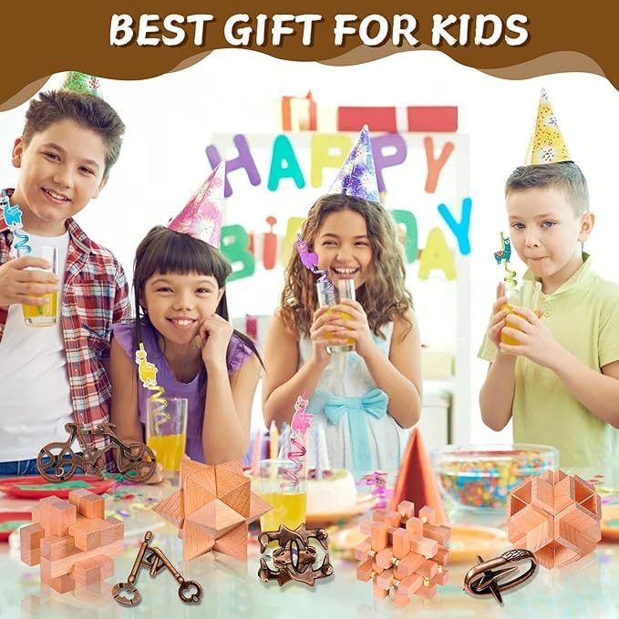 Rileryan 16 PCS Wooden Metal Brain Teasers for Adults 3D Brain Teasers Wooden Cube
